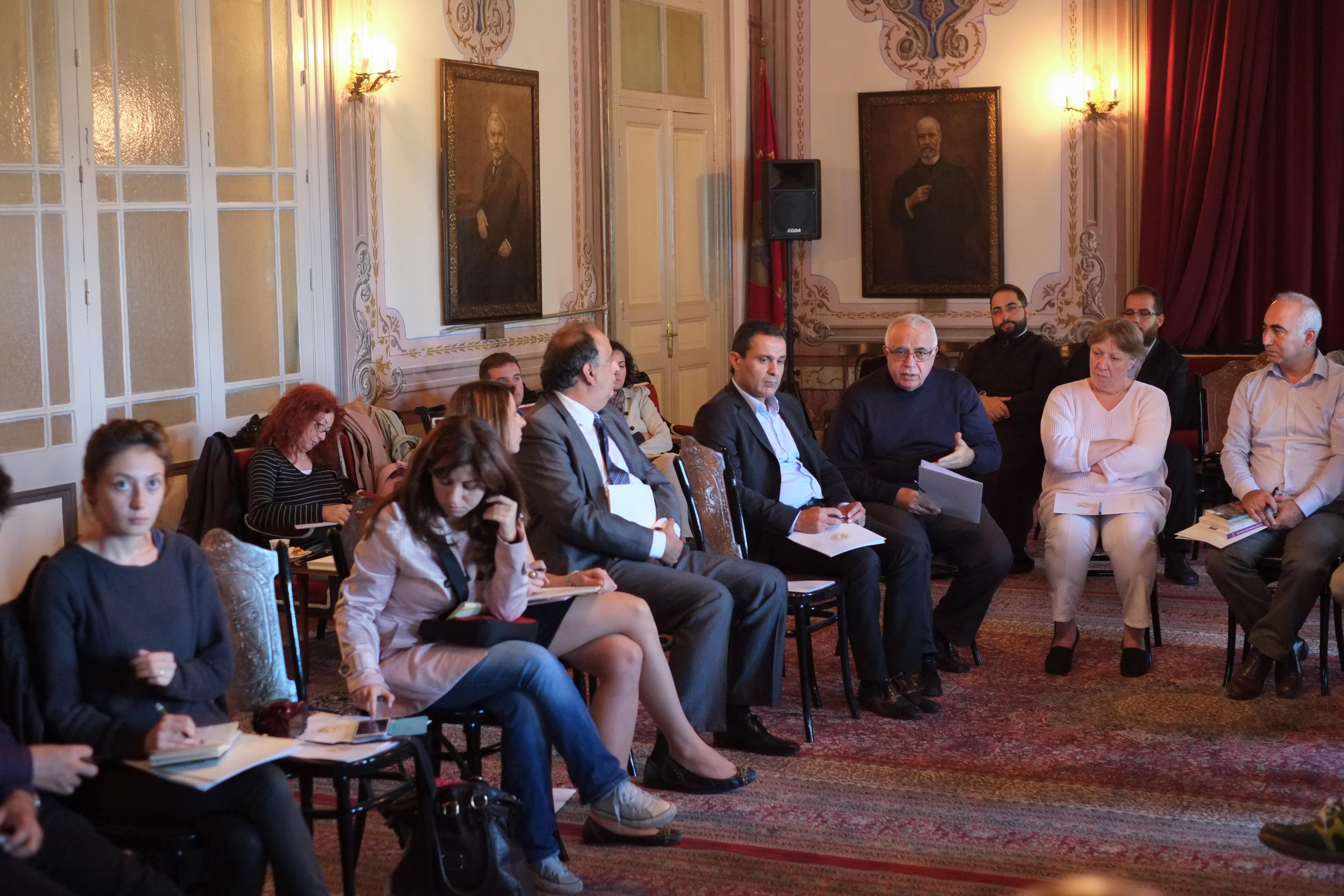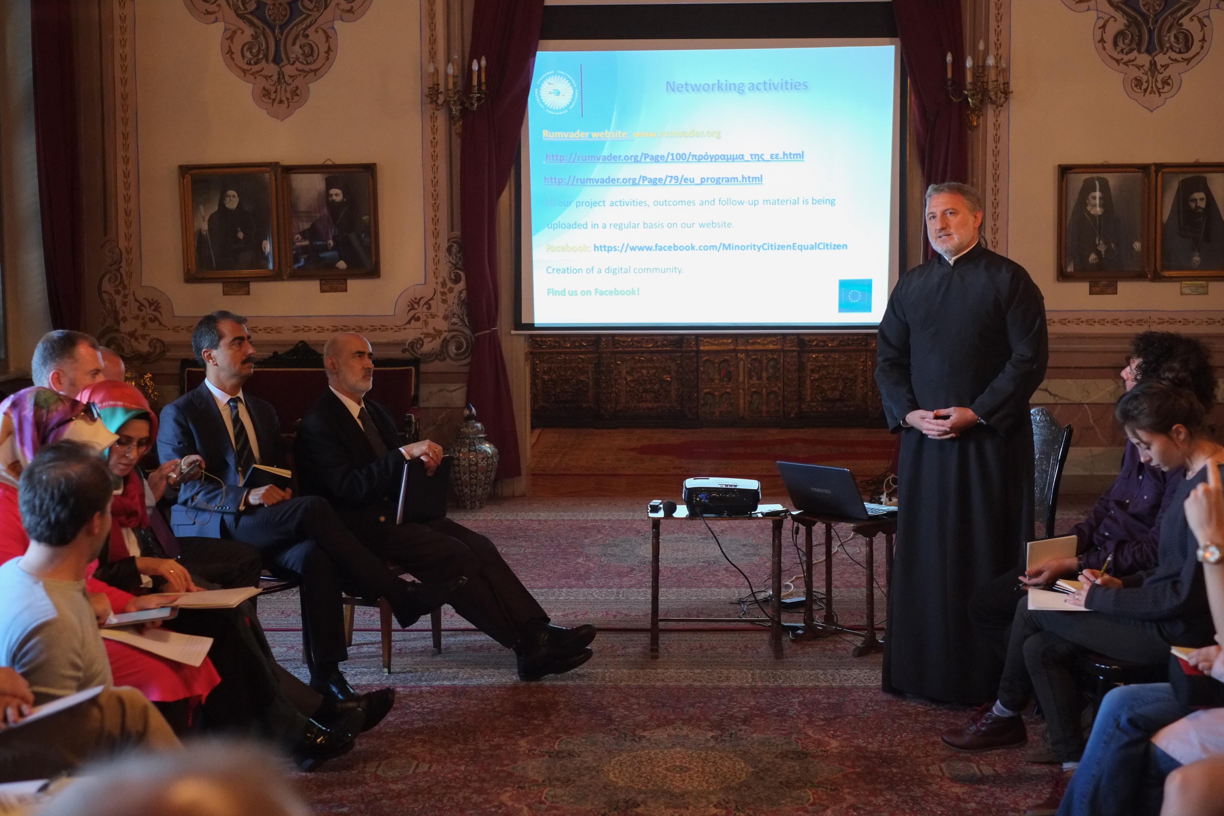 Basın mensuplarıyla birlikte Bursa Metropoliti ve okulun Başrahibi Prof. Dr. Elpidophoros Lambriniadis, Ekümenik Patrikhane Basın Sorumlusu Peder Dositheos, VGM Cemaat Vakıfları Temsilcisi Lakis Vingas, derneğimiz yönetim kurulu üyeleri Sula Kapudağ, Stratos Dolçinyadis ve Yorgo Papaliaris’in yanısıra AB programının koordinatörlüğünü üstlenen Frango Karaoğlan ve Marina Drymalitou’nun yer aldığı toplantı, Marina Drimalitu’nun program dahilinde bugüne kadar yapılanların özetini geçtiği ve programı ana hatlarıyla anlatan bilgilendirici konuşmasıyla başladı.