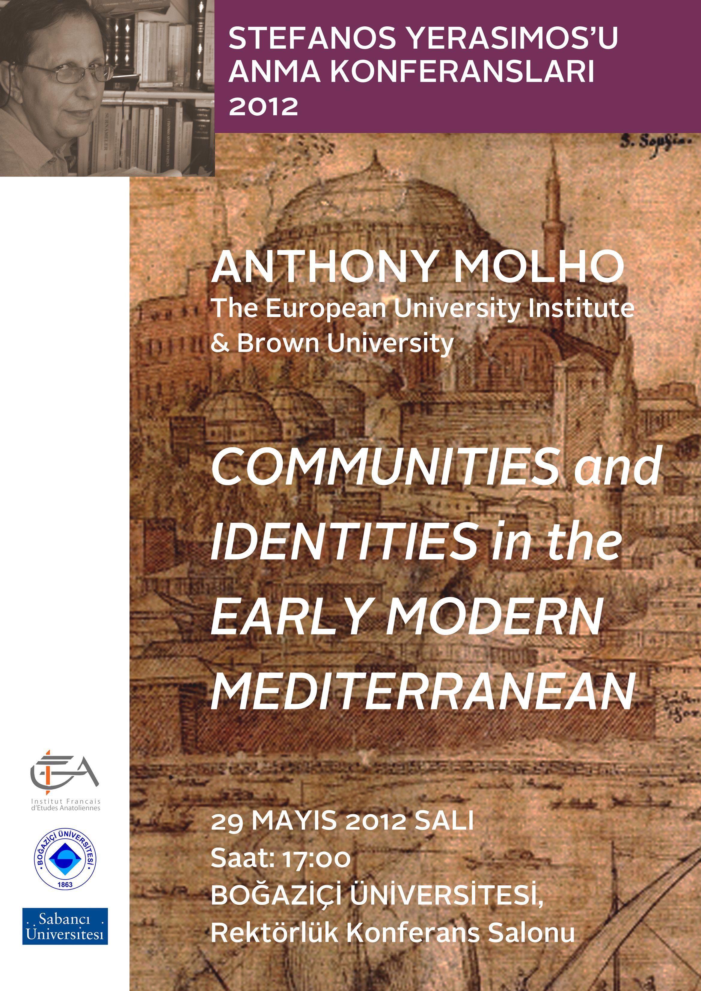 Στην αίθουσα της Πρυτανείας του Πανεπιστημίου Boğaziçi στις 17:00, θα μιλήσει ο Anthony Mohlo, καθηγητής στο European Unıversity Institute, για τις «Κοινότητες και ταυτότητες στη Μεσόγειο των αρχών του μοντερνισμού».